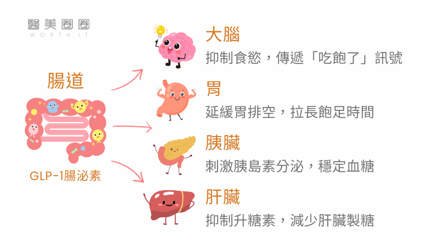 1. GLP-1 的功能多管齊下,全面管理「飽足」與「血糖」