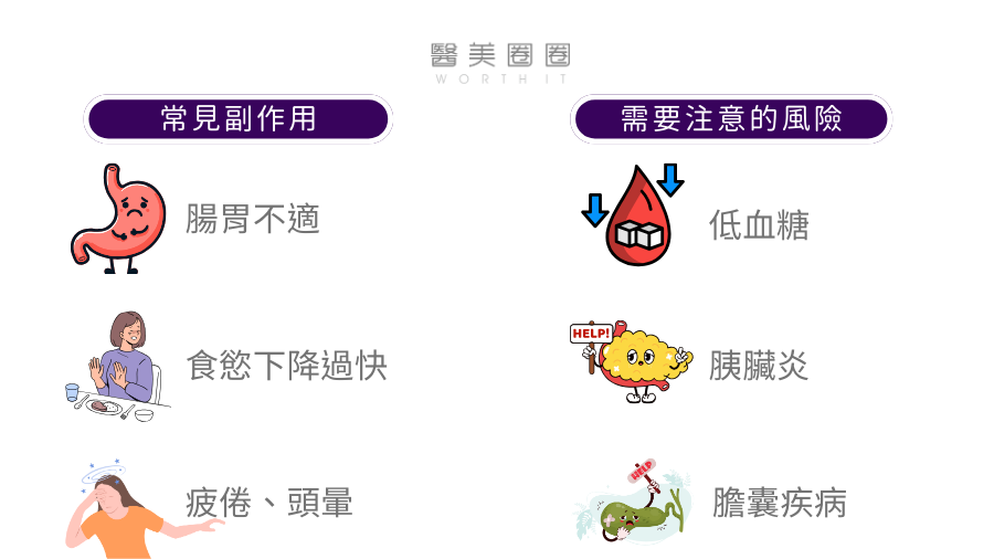 - 膽囊疾病:研究指出使用 GLP-1 相關藥物,膽結石風險略增