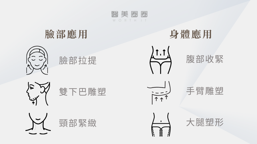 A:主要針對臉部中下半臉,例如雙下巴、下頷線、嘴邊肉與臉頰鬆弛,也可應用於身體局部脂肪堆積處,協助線條更緊實流暢。