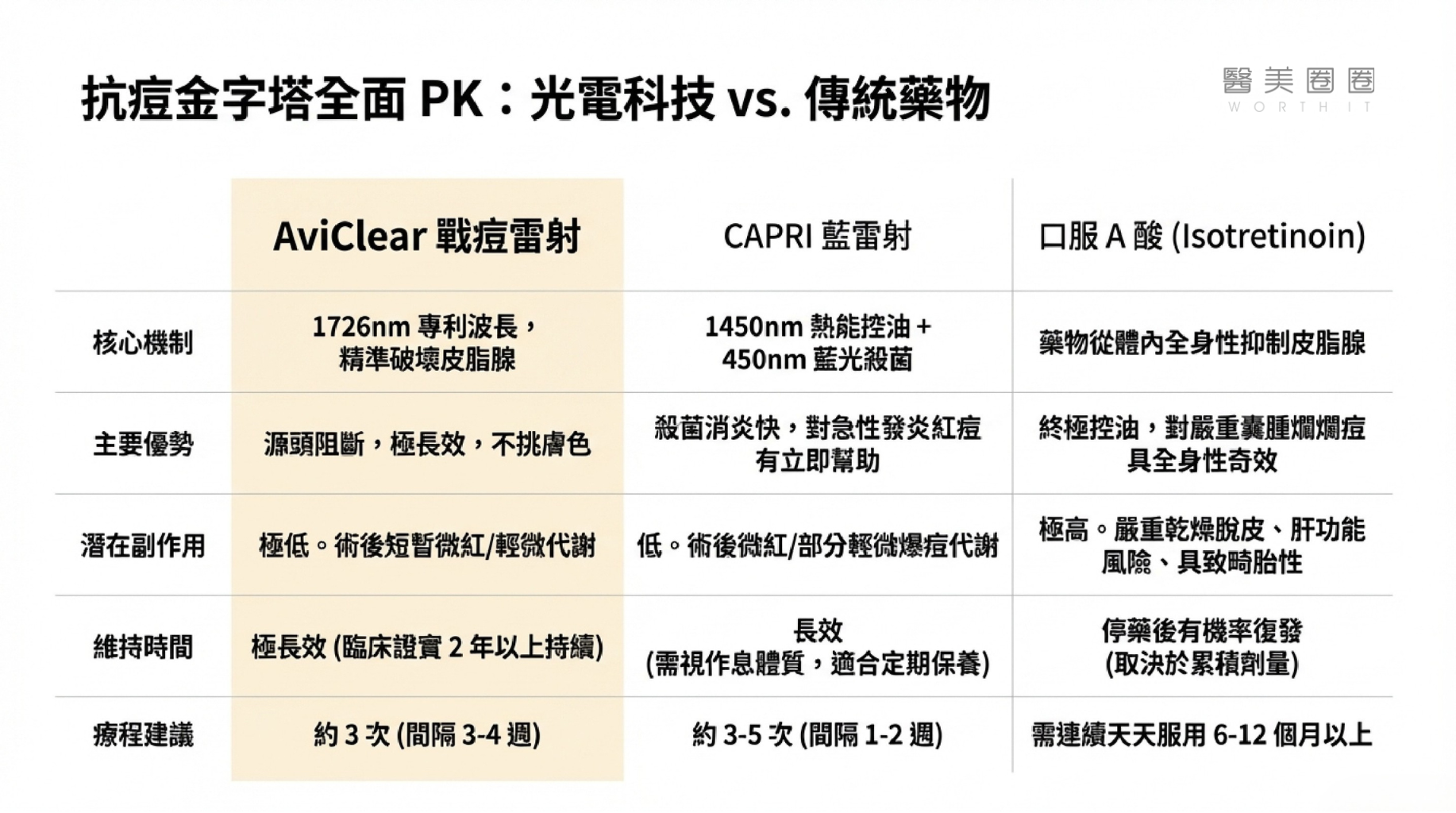 AviClear 戰痘雷射 vs. 藍雷射與傳統療法:抗痘金大PK