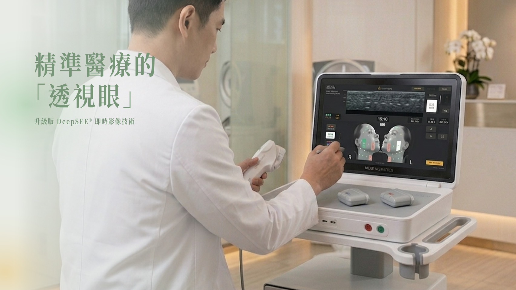 每個人的皮膚厚度、皮下脂肪分布、筋膜層(SMAS)的深度,甚至是神經血管的走勢都完全不同。即便是在同一個人的臉上,左側與右側的組織密度也存在差異。傳統的音波療程多半屬於「盲打」,醫師只能憑藉經驗去推測深度,這就像是在迷霧中航行,風險與不穩定性自然較高。
