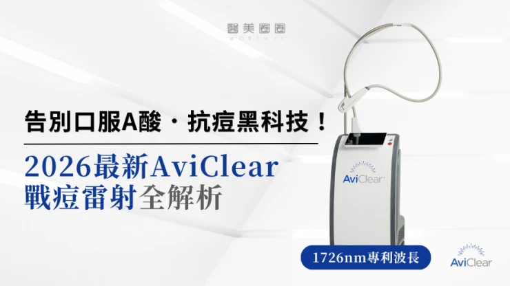 告別口服A酸抗痘黑科技!AviClear戰痘雷射全解析青春痘(痤瘡)是許多人從青春期到成年後揮之不去的夢魘。為了抗痘,你是否也經歷過神農嚐百草的過程?從擦各種酸類保養品、看皮膚科拿抗生素,到最後不得不吞下口服 A 酸,忍受嘴唇乾裂、皮膚脫屑,甚至還要定期抽血檢查肝功能指數。 難道,想要擁有乾淨平滑的肌膚,就必須付出這些代價嗎? 隨著醫學美容科技的進步,抗痘治療終於迎來了劃時代的突破。全球首款獲得美國 FDA 認證,專門針對「皮脂腺」進行治療的 AviClear 戰痘雷射 正式問世。它主打不需依賴藥物、無嚴重副作用,透過專利 1726nm 波長雷射,從根源「關閉」過度活躍的皮脂腺。 這篇文章將帶你全面深入了解 AviClear 戰痘雷射的作用原理、與傳統治療的差異、療程細節以及真實的術後效果,幫助你評估這項抗痘黑科技是否適合自己。為什麼痘痘總是反覆發作?看懂萬惡之源「皮脂腺」在認識 AviClear 戰痘雷射之前,我們必須先了解痘痘(痤瘡)究竟是怎麼形成。青春痘的生成機制主要包含四大關鍵: 皮脂分泌過盛:受到賀爾蒙、壓力、飲食或基因影響,皮脂腺製造出過多的油脂。 毛囊角化異常:老廢角質無法正常代謝,與油脂混合後堵塞毛孔,形成粉刺。 痤瘡桿菌增生:堵塞的無氧毛孔成為痤瘡桿菌(C. acnes)的溫床,細菌大量繁殖。 發炎反應:細菌代謝物引發免疫反應,導致紅腫、化膿,形成嚴重的囊腫型或膿皰型痘痘。在這四個環節中,「皮脂分泌過盛」是啟動後續一連串災難的開關。傳統的治療方式,如抗生素主要針對殺菌;外用酸類主要針對去角質。唯有口服 A 酸能夠有效抑制皮脂腺分泌,這也是為什麼口服 A 酸過去被視為治療嚴重痘痘的終極武器。然而,口服 A 酸伴隨著全身性的副作用。而 AviClear 戰痘雷射的誕生,就是為了一次解決這個痛點:我們能不能在不吃藥的情況下,精準且長效地控制皮脂腺?什麼是 AviClear 戰痘雷射?解密 1726nm 的物理奇蹟AviClear 戰痘雷射是一台利用特定波長光能來治療痤瘡的醫療儀器。它的核心技術在於突破性的1726nm 波長雷射。1. 為什麼是 1726nm 波長?「專吃油脂」的標靶治療在雷射醫學中,不同的波長會被不同的目標物(如黑色素、血紅素、水分)吸收。1726nm 這個波長非常特殊,它在人體組織中,被皮脂(油脂)吸收的效率,大約是被水分吸收的 2 倍。當 AviClear 的雷射光束打入真皮層時,能量會精準地被富含油脂的「皮脂腺」大量吸收,進而產生熱能。這些熱能會破壞過度活躍的皮脂腺細胞,變得萎縮、分泌量大幅下降。當沒有過多的油脂,毛孔就不易堵塞,痤瘡桿菌也失去了生存的養分,痘痘自然就失去了生長的溫床。2. AviCool™ 藍寶石冷卻系統:保護表皮,大幅提升舒適度既然要用熱能破壞深層的皮脂腺,表皮會不會被燙傷?這正是 AviClear 的另一項核心專利。機器配備了專屬的 AviCool™ 藍寶石接觸式冷卻系統。在雷射擊發前、擊發中與擊發後,冷卻系統會持續將表皮溫度維持在安全的低溫狀態。這不僅能防止表皮熱傷害、避免術後反黑,更大幅降低了療程中的痛感,讓患者在不需要敷麻藥的情況下(視個人耐受度而定),也能順利完成治療。AviClear 戰痘雷射 vs. 藍雷射與傳統療法:抗痘金大PK過去我們面對嚴重的青春痘,「吞口服A酸」幾乎是唯一的終極解方。然而,隨著光電科技的突破,現代的醫美抗痘已經邁入了「精準破壞皮脂腺」的新紀元。目前市面上討論度最高的兩大抗痘黑科技,分別是 AviClear 戰痘雷射與 CAPRI 藍雷射。雖然兩者都主打不吃藥、從根源控油,但在波長與作用機制上卻有著根本的差異。我們該如何選擇?它們與傳統的口服A酸又有什麼不同?以下為您全面解析。頂尖對決:AviClear 戰痘雷射 vs. CAPRI 藍雷射這兩款都是目前熱門的無藥物抗痘雷射,雖然目標一致,但「作戰策略」卻截然不同:1. AviClear 戰痘雷射(1726nm):專注皮脂腺的「源頭阻斷」作用原理:搭載專利 1726nm 波長,具備極高的「油脂專一性」,能穿透皮膚精準鎖定並加熱肥大的皮脂腺,使其萎縮。核心強項:直接從源頭切斷出油量並破壞痘痘的生長環境,主打極長效的抗痘與控油效果,非常適合追求長期穩定膚況、不想依賴藥物的人。2. CAPRI 藍雷射(1450nm + 450nm):控油+殺菌的「雙效複合」作用原理:結合 1450nm 的熱能來縮減皮脂腺(控油),同時搭配 450nm 藍光直接消滅表皮的痤瘡桿菌(殺菌)。核心強項:雙管齊下,對於臉上正在急性發炎、紅腫的痘痘,具有極佳的立即退紅與消炎效果,適合需要快速壓制大面積發炎的患者。3. 傳統終極武器:口服A酸(Isotretinoin)作用原理:屬於全身性的系統性治療。它能全面抑制皮脂腺分泌、使皮脂腺萎縮,同時促進毛囊正常角化,並大幅減少發炎反應與痤瘡桿菌增生。核心強項:能夠一次打擊痘痘的四大成因,對於嚴重型、結節囊腫型痘痘,或是對其他治療(包含抗生素、外用藥膏)無效的頑固型痘痘,具有極高的治癒率與長效性。需注意事項:伴隨較明顯的副作用,最常見包含嘴唇乾裂、皮膚乾燥脫皮、眼睛乾澀等。此外,孕婦絕對禁用(具致畸胎性),療程期間需配合醫師定期抽血監測肝功能與血脂,且通常需持續服用數個月至一年以上以達到標準的累積劑量。CAPRI 藍雷射與 AviClear 戰痘雷射最主要的差異,在於「雷射波長」與「對油脂的吸收破壞力」。簡單來說,藍雷射主打「控油加殺菌」的雙效機制,適合用來對付輕中度的痘痘與毛孔粗大