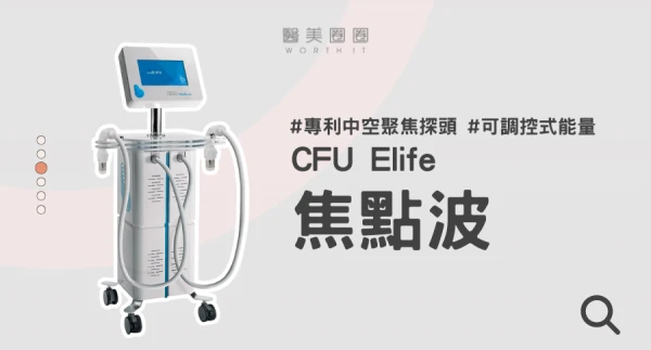 CFU Elife 焦點波(中文全名為“百蒂客”幸芙聚焦超音波系統,衛部醫器輸字第037303號)是一款專為美容醫學用途設計的非侵入式儀器。透過高強度聚焦超音波技術,讓醫師能根據個人需求選擇合適的聚焦深度,為臉部與體態提供漸進式的緊實與保養。